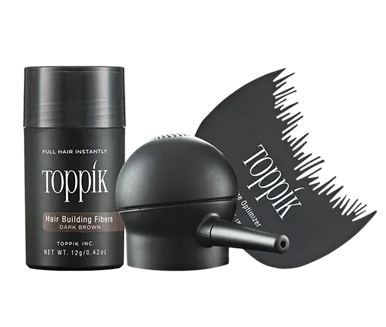 Toppik Hair Building Fibers are made from natural keratin proteins that blend seamlessly with existing hair to instantly create the appearance of thicker, fuller hair. Designed to conceal thinning areas and fine hair, these lightweight fibers attach securely to hair strands for natural-looking coverage that lasts through daily activity and washes out easily with shampoo.